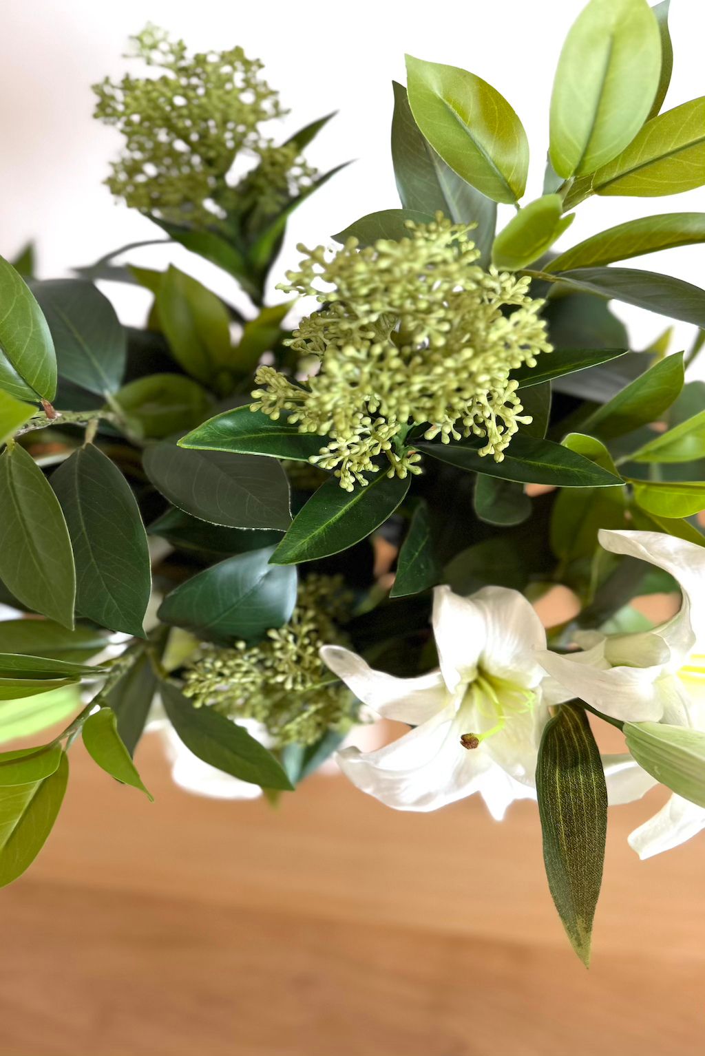 Épuré et lumineux, Grand Blanc dégage une élégance naturelle et intemporelle. Ses fleurs blanches, portées par un feuillage dense et frais, diffusent une clarté apaisante, comme une lumière douce venue du dehors.