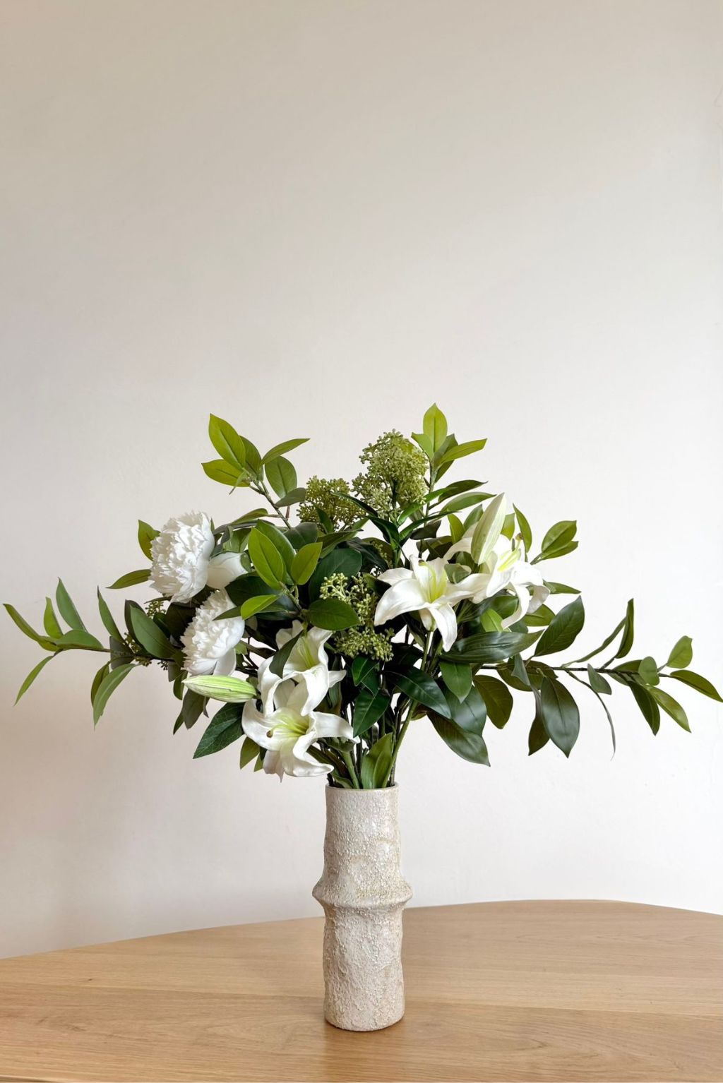 Dans un intérieur, ce bouquet apporte équilibre et pureté, créant une atmosphère sereine et raffinée.