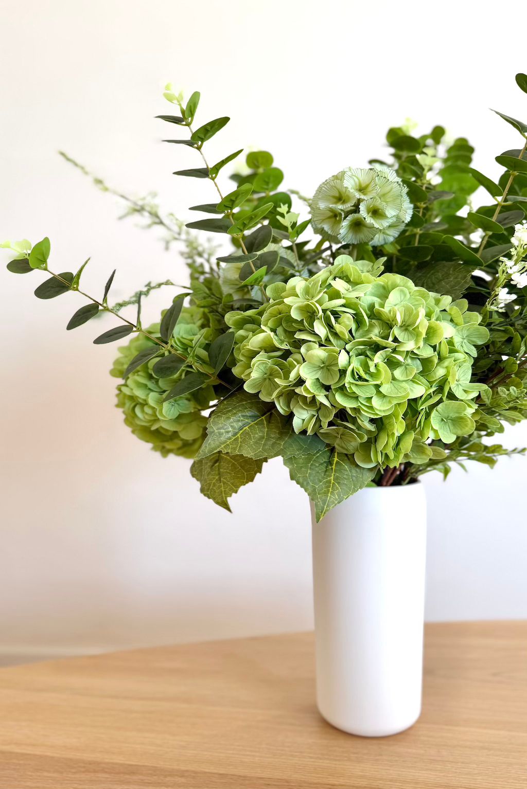 Abondant et lumineux, Grand Jardin déploie une profusion de verts frais et vibrants. Entre feuillages aériens et hortensias généreux, il évoque la beauté d’une nature libre et harmonieuse.