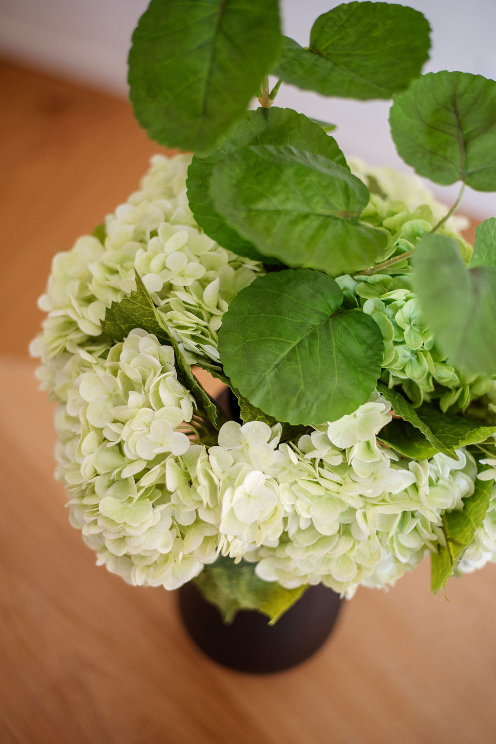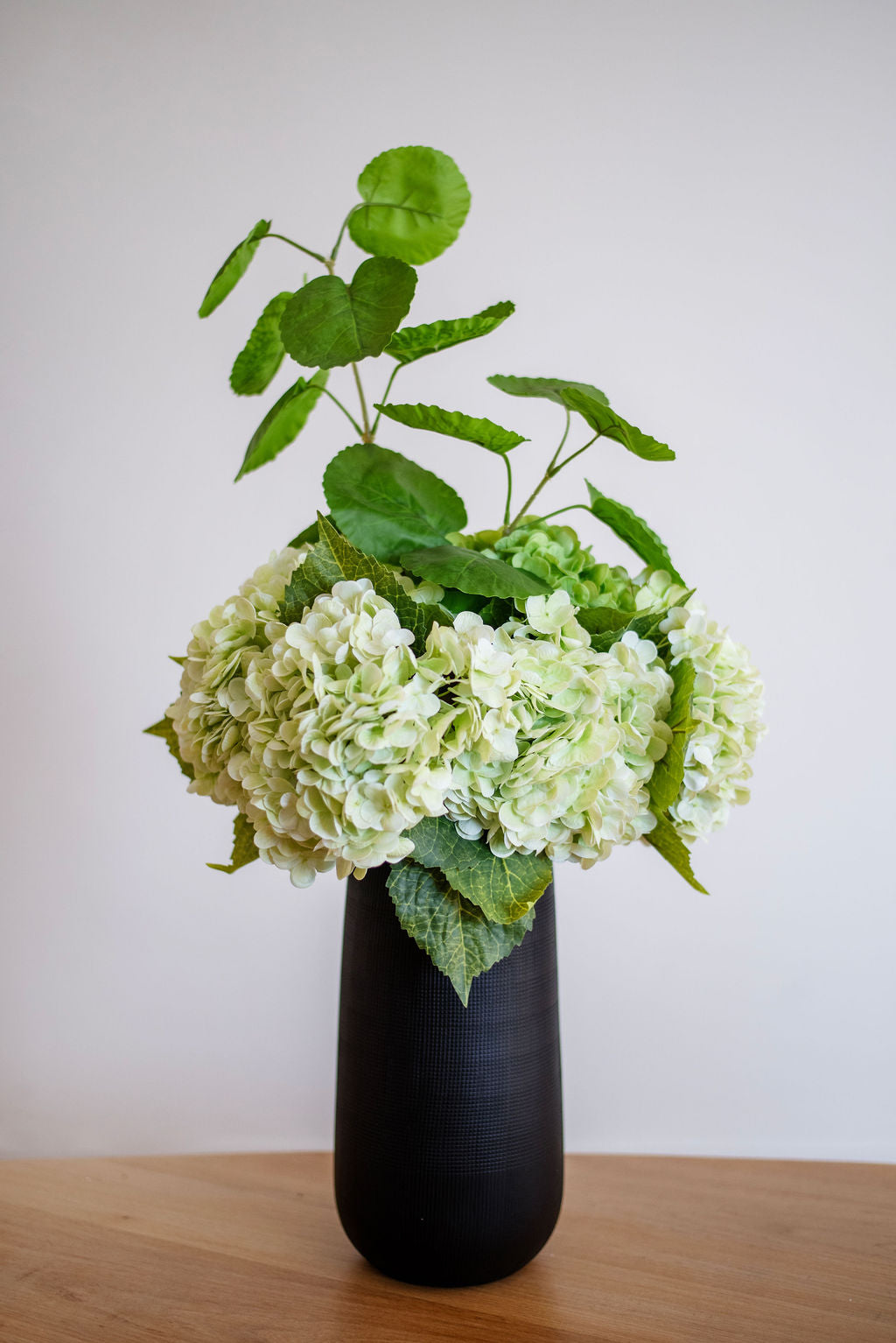 Majestueux et apaisant, Grand Vert impose sa présence sans jamais dominer. Son feuillage généreux et ses hortensias tendres évoquent une nature luxuriante, fraîche et bienveillante. Dans une pièce, il crée une impression de calme profond, comme une clairière silencieuse après la pluie.