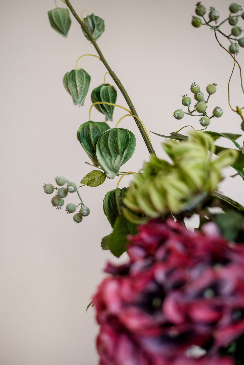 Dans une pièce, ce bouquet crée une atmosphère élégante et singulière, à la fois raffinée et pleine de caractère. Il attire l’œil comme un sillage discret, laissant une impression de beauté calme et assurée.